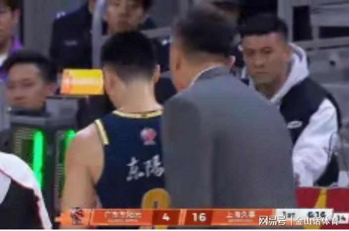 这还没完,更令人匪夷所思的一幕,出现在下一回合。广东队断球快攻反击,胡明轩持球杀入篮下,晃开防守人后上空篮,结果上空篮不进,被上海队抢到篮板打反击成功。广东主帅杜锋,在胡明轩上空篮不进后,一边口中念念有词,一边立即指着替补席上的徐杰,让其上场换下了胡明轩。